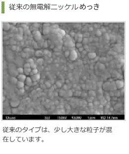 通常より薄い皮膜でも優れた耐食性を発揮するため、軽量化や精密な寸法管理が必要な部品にも適しています。コスト削減や加工効率の向上にも貢献できる、実用性の高い無電解ニッケルめっきです。