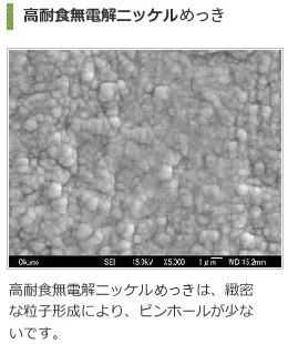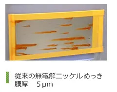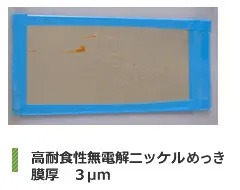 3μm程度でも従来のめっき膜と同等以上の性能を発揮する弊社の高耐食性無電解ニッケルめっき。精度を求められる条件の下でも、薄膜と同時に、強い耐食性を備えることが可能になります。