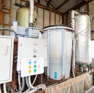 弊社の用水(地下水)は全て軟水にして使用しております。